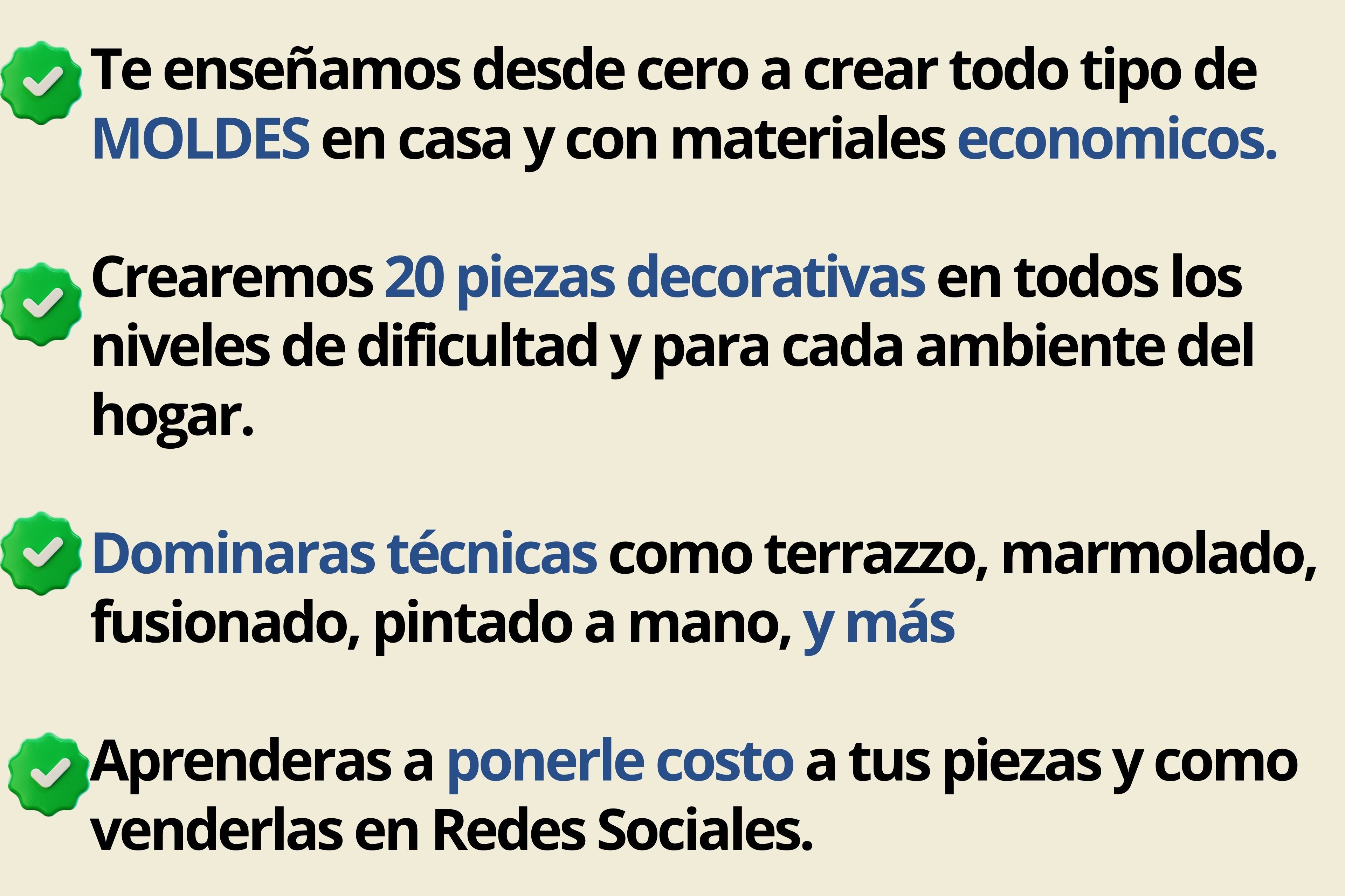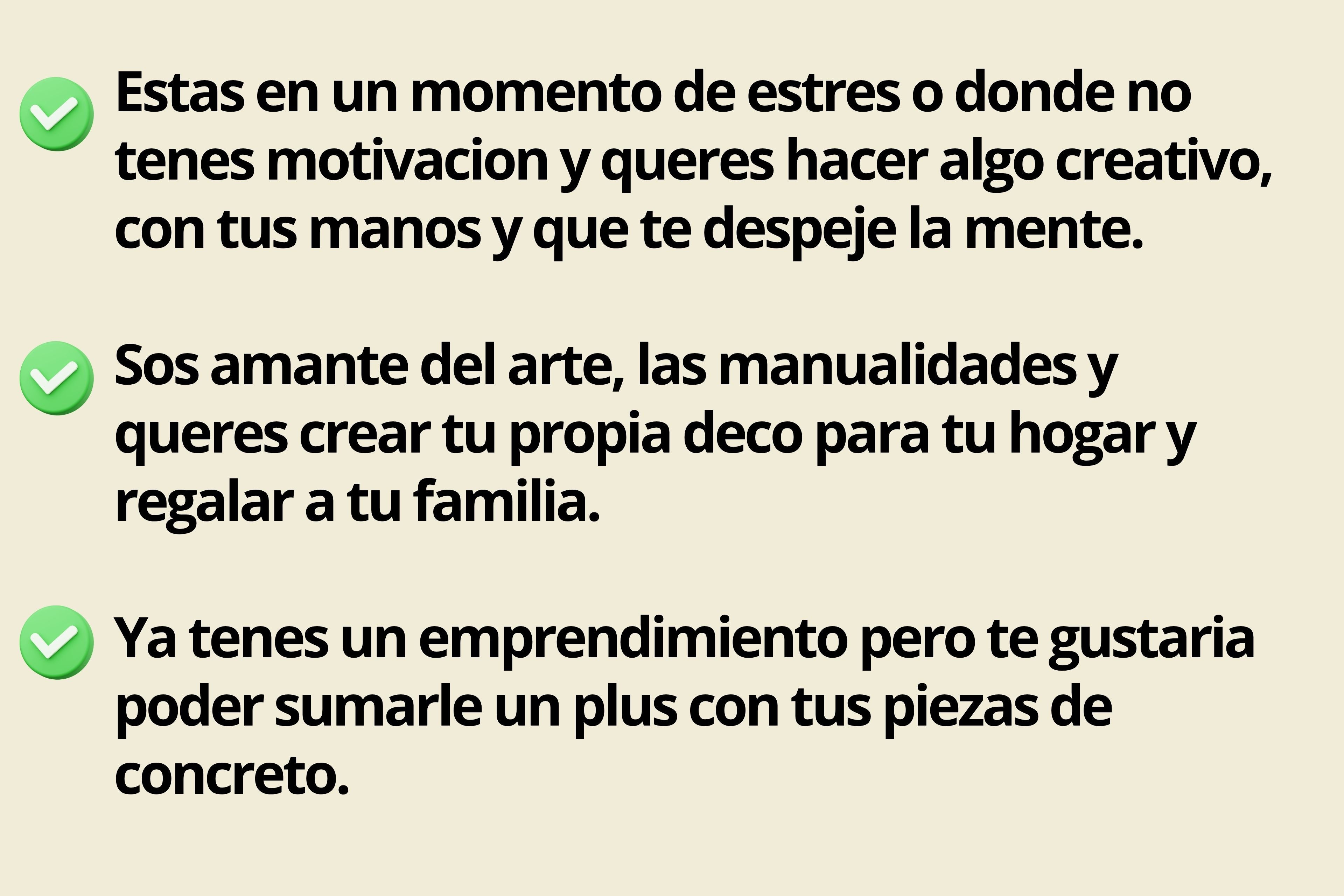 ¡No! El ebook está pensado para principiantes. Vas a aprender desde cero cómo trabajar el cemento blanco y el polvo de mármol, cómo crear moldes, combinar colores y lograr acabados profesionales.